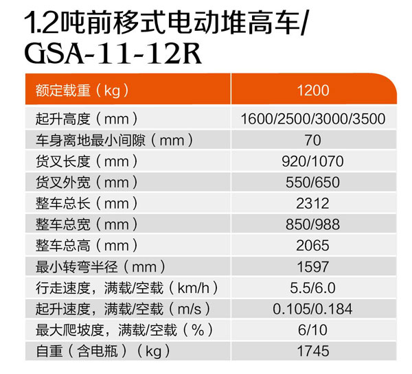 1.2噸前移式電動(dòng)堆高車GSA-11-12R