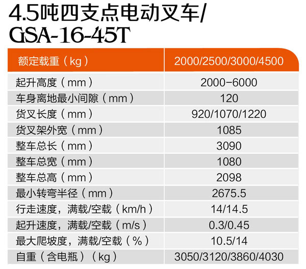 4.5噸四支點(diǎn)電動(dòng)叉車GSA-16-45T