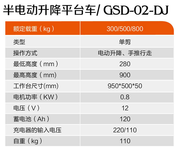 半電動升降平臺車GSD-02-DJ