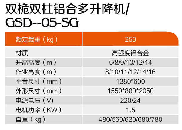 雙桅雙柱鋁合多升降機(jī)GSD-05-SG